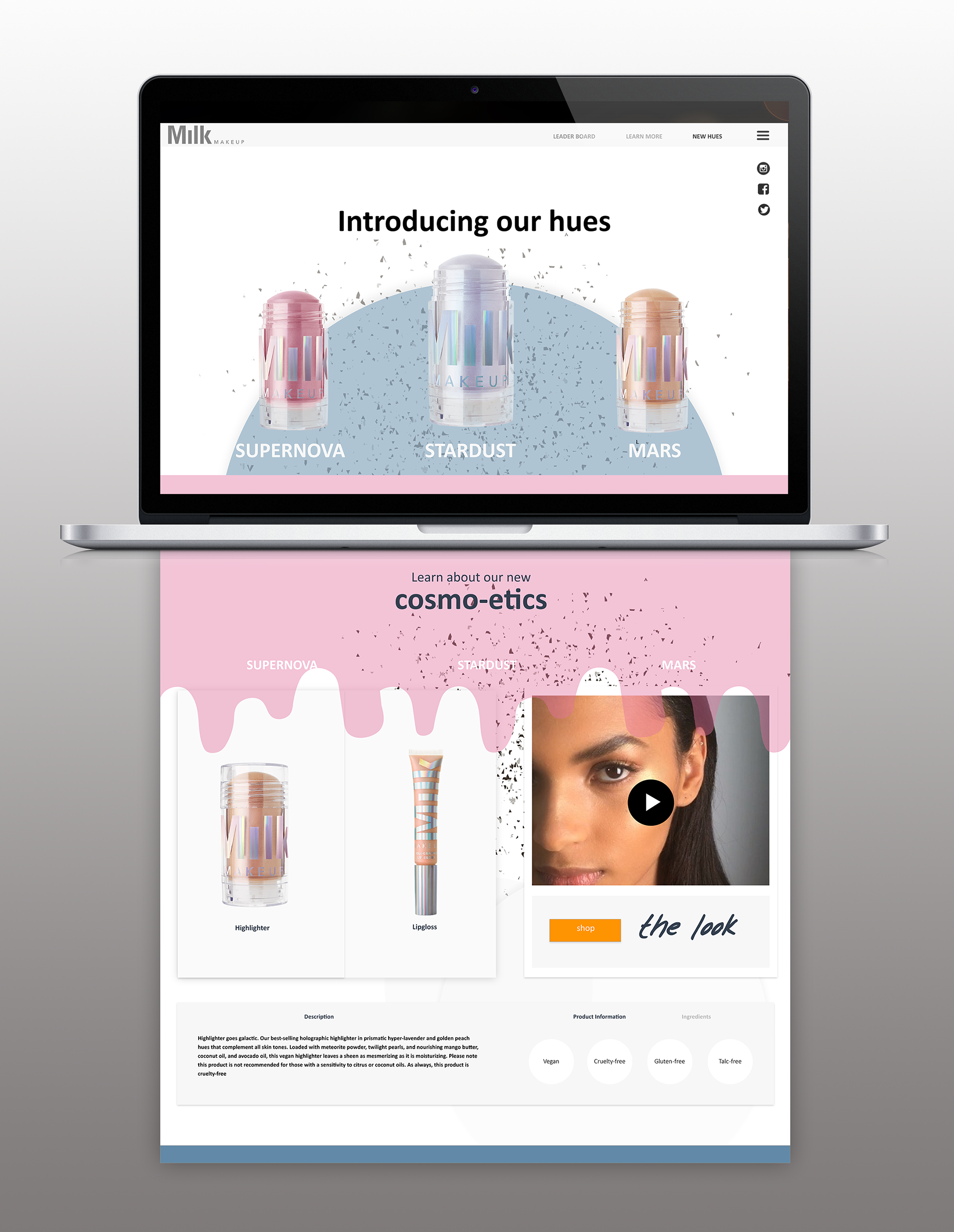 Landing page designed to showcase new 'Holographic' products, while introducing the exciting new makeup social media challenge.